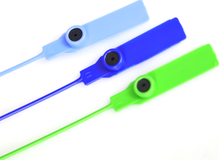 市场上的塑料铅封材料基本分成PP、PE、尼龙等。PP:聚丙烯,半透明,生产中熔点是220-320°,只用PP无手感,时间长会断裂;PE:聚乙烯,半透明,只用PE一折不会出白印,但是太软,拉力小,容易拉丝儿;尼龙:尼龙66造价高,一折不会出白印,不好量产,要求严格;PP+PE,可以增加硬度和柔软度,我公司生产的塑料铅封材质就是PP+PE。